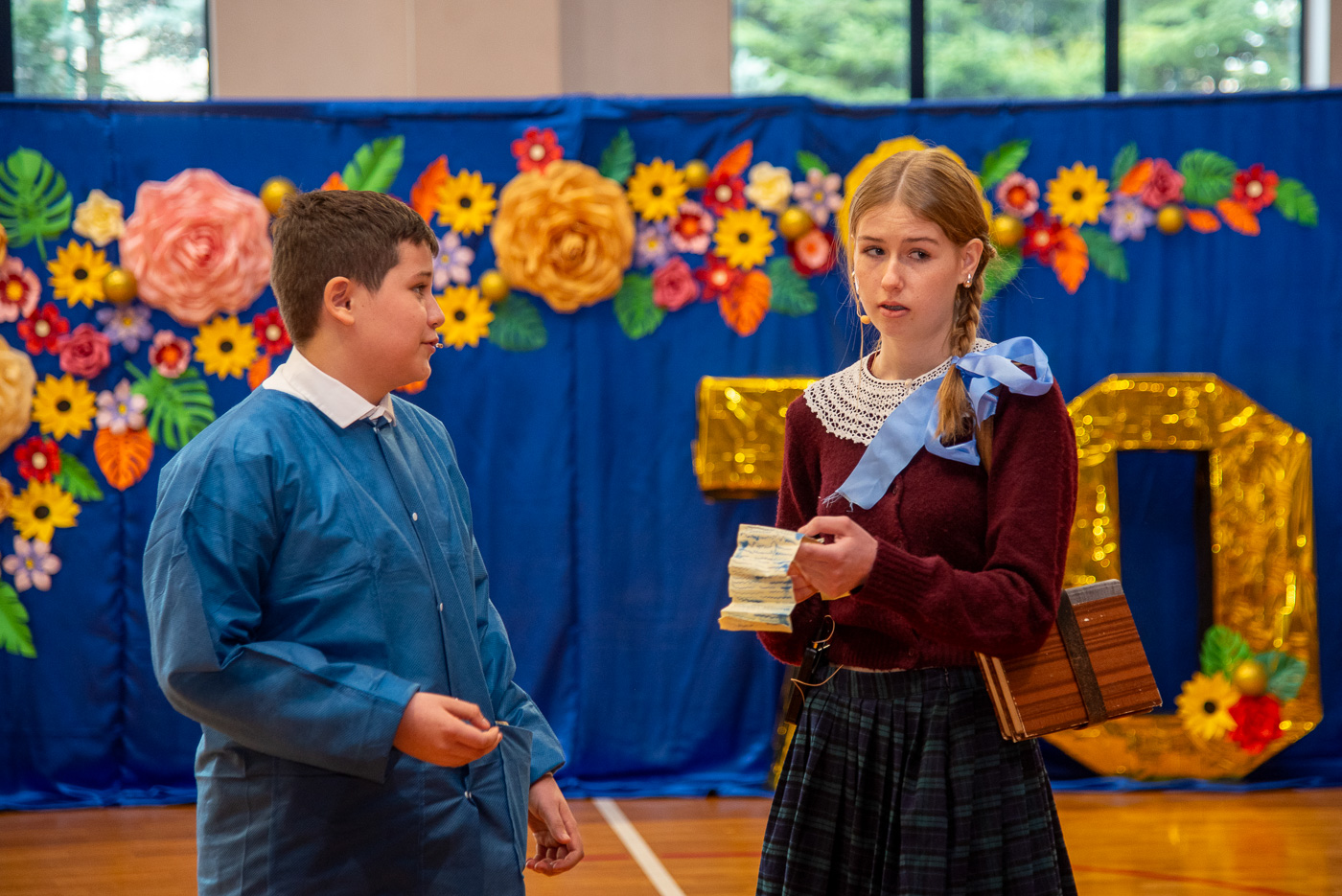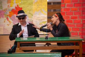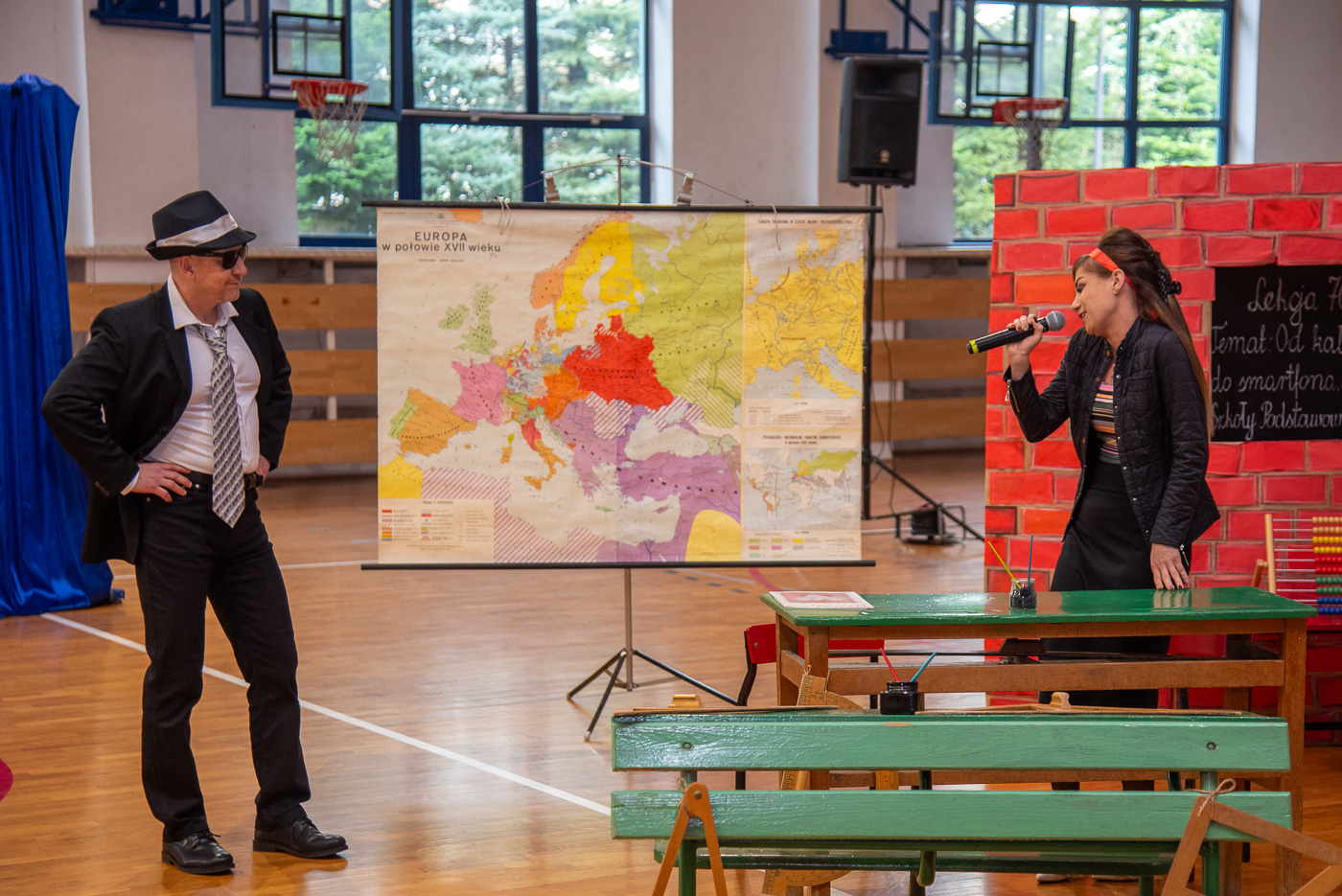Pomiędzy występami muzycznymi zaprezentowano scenki z życia szkoły, w których uczniowie przedstawili kolejne dekady działalności placówki – od lat 50. XX wieku po współczesne lata 20. XXI wieku. W humorystyczny i wzruszający sposób pokazano, jak zmieniała się szkoła, jej tradycje i codzienność kolejnych pokoleń uczniów. W scenkach bawili nas: Blanka Lamorska, Wiktoria Kurantowicz, Patrycja Mądra, Nadia Ambrożewicz, Eliza Dunicz, Maja Nietrzeba, Filip Skrabek, Luiza Felner i Zosia Oparka.
