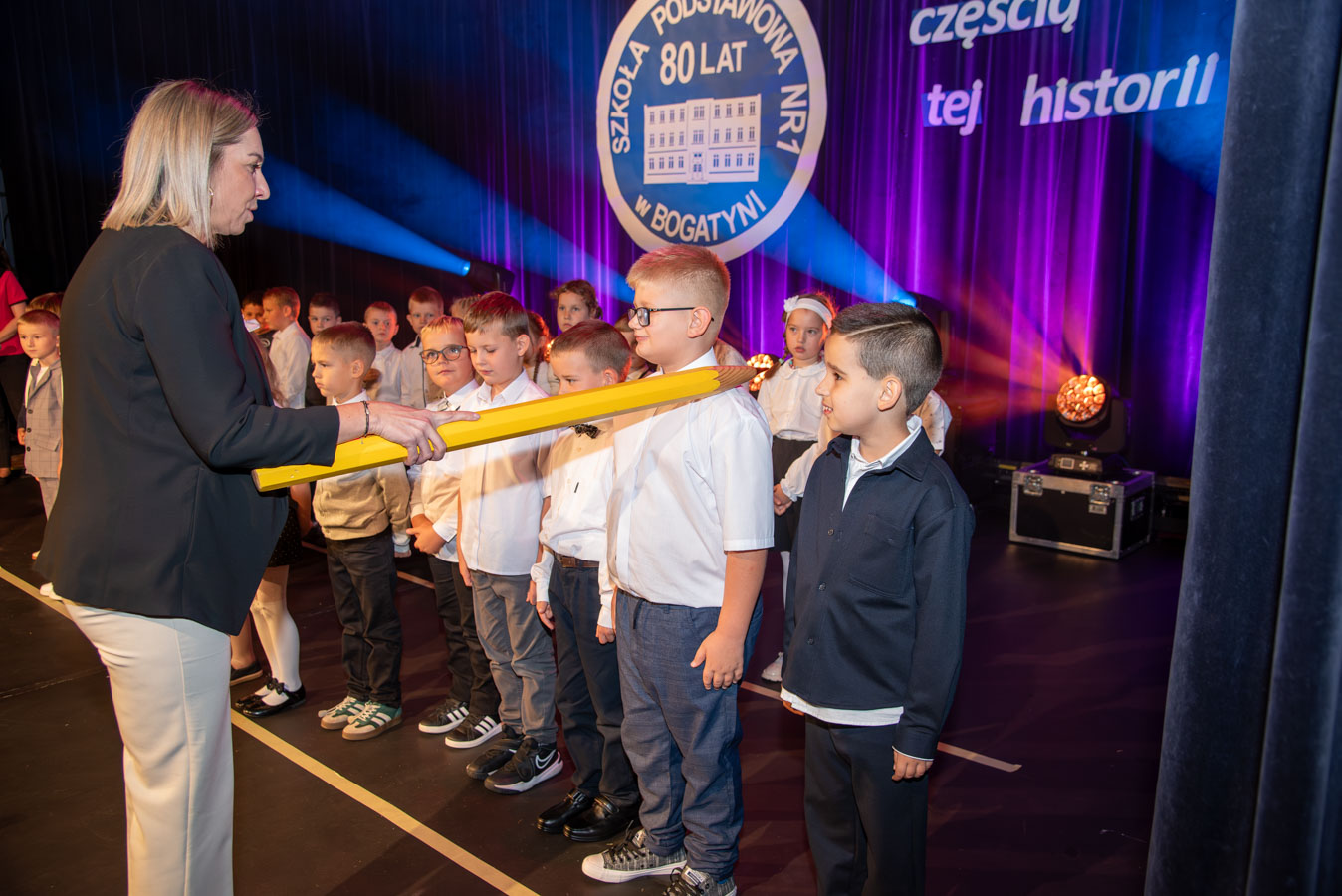 W tym uroczystym dniu do społeczności szkolnej zostali włączeni pierwszoklasiści, którzy dostąpili pasowania na uczniów SP nr 1. W imieniu burmistrza Sekretarz Łukasz Roszkowski wręczył z tej okazji pierwszakom prezenty oraz życzył mnóstwa sukcesów w tej szkolnej wędrówce. Dziękujemy wszystkim gościom i całej społeczności szkolnej za uświetnienie tego dnia swoją obecnością i zaangażowaniem w obchody 80-lecia szkoły.