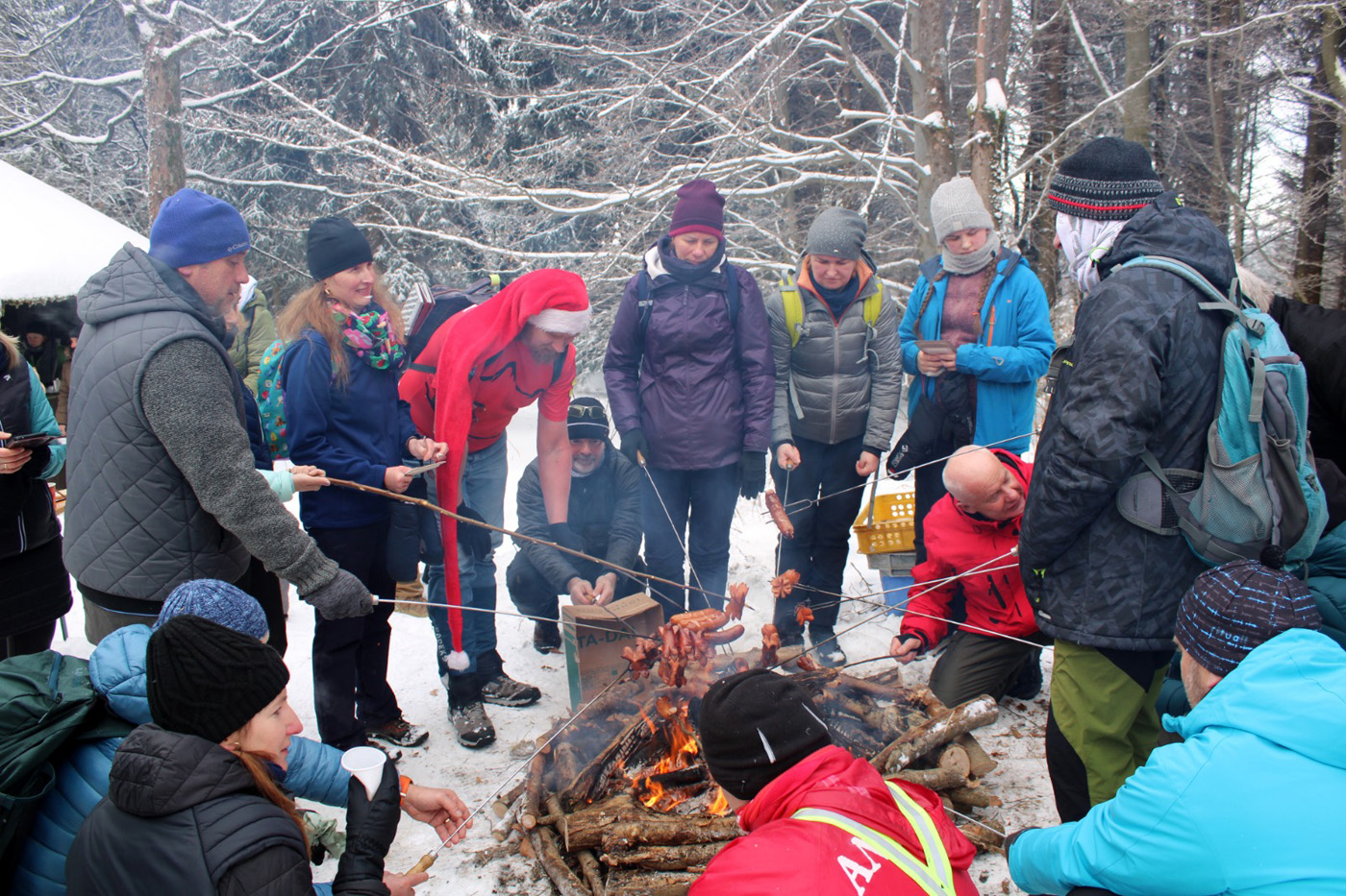 Na każdej z tras czekało ognisko, przy którym można było się ogrzać, napić gorącej herbaty i chwilę odpocząć w miłej, turystycznej atmosferze. Był to doskonały moment na rozmowy, wymianę wrażeń i integrację z uczestnikami z różnych stron.