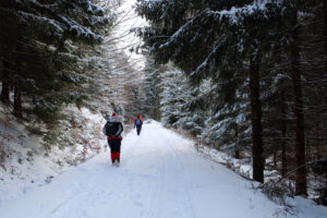 Tym razem pogoda była wręcz idealna na zimowy rajd. Śnieżna aura i siarczysty mróz dodały całej trasie niezwykłego klimatu, a skrzący się śnieg, białe lasy i zamarznięte krajobrazy sprawiły, że wędrówka stała się prawdziwą przygodą. Takie warunki tylko podniosły atrakcyjność wydarzenia i sprawiły, że każdy kilometr był jeszcze bardziej wyjątkowy.