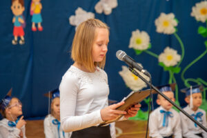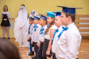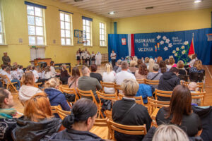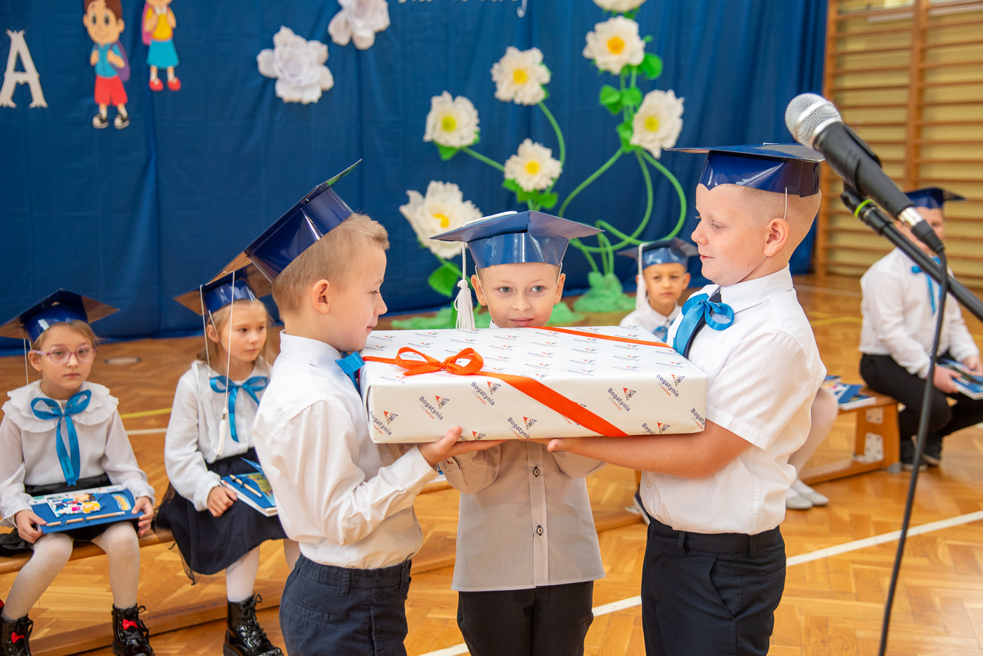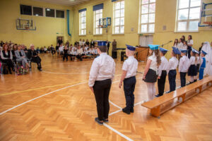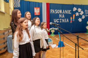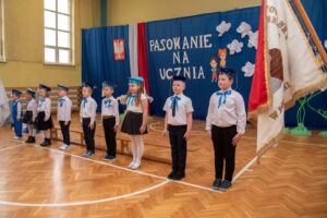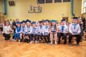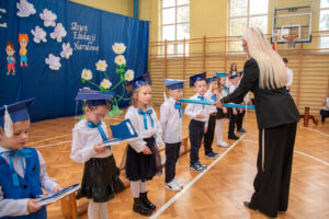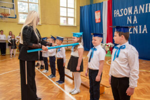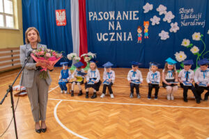 Centralnym punktem dnia było przyjęcie pierwszoklasistów do społeczności szkolnej. Dzieci zaprezentowały swoje umiejętności w programie artystycznym, udowadniając gotowość do bycia uczniami. W najbardziej podniosłym momencie pierwszoklasiści złożyli uroczyste ślubowanie. Pani dyrektor Małgorzata Turkiewicz-Baczmańska dokonała pasowania na ucznia. Nowo pasowani uczniowie otrzymali pamiątkowe dyplomy i upominki.