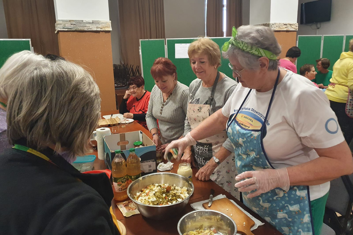 15 października seniorzy z Polski i Czech wzięli udział w kolejnych warsztatach kulinarnych, podczas których wspólnie przygotowywali tradycyjne potrawy – sałatkę ziemniaczaną oraz czeski przysmak utopieniec.