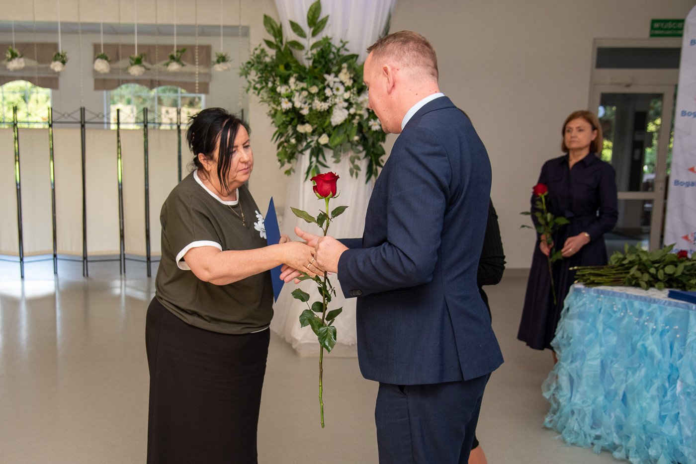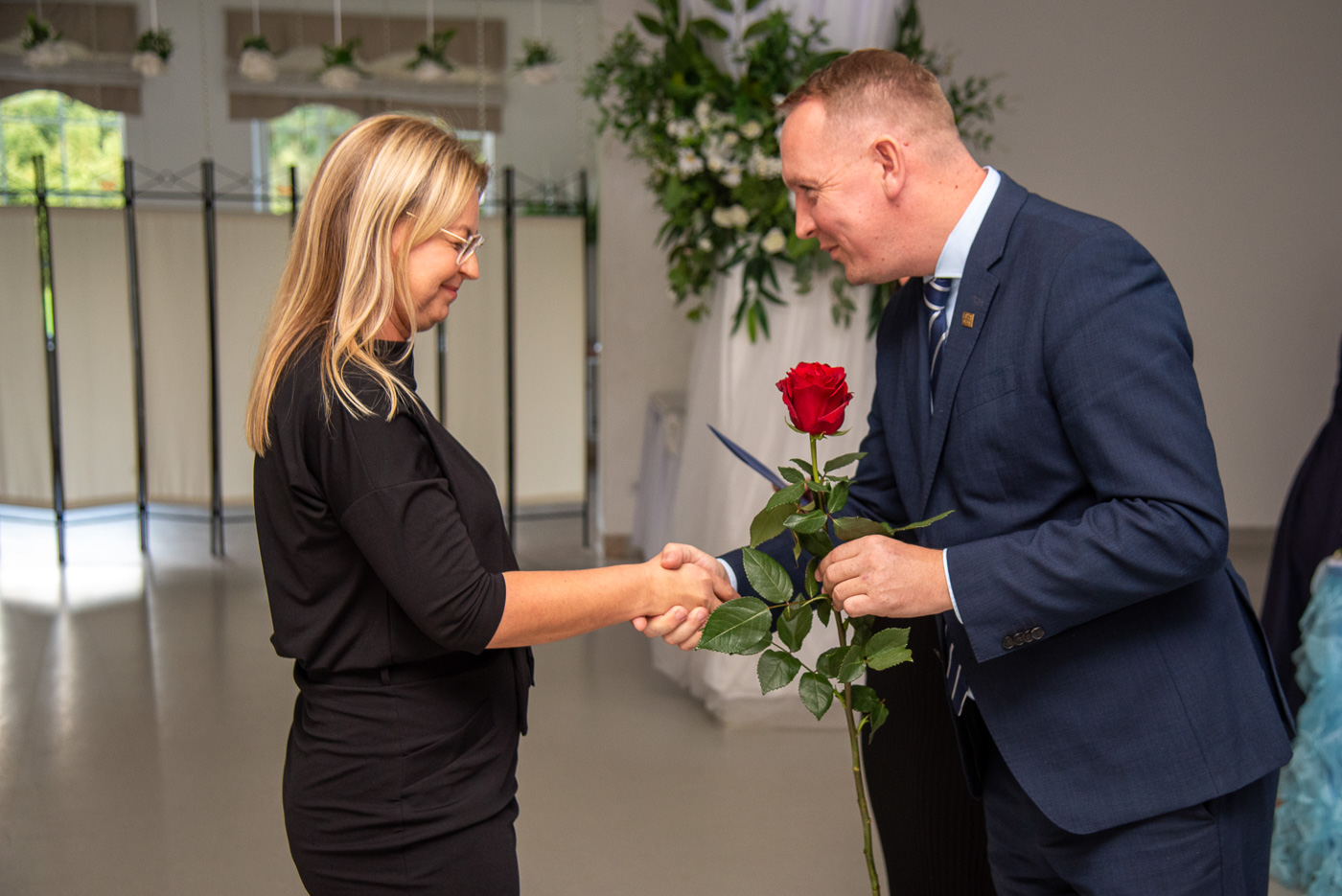 Burmistrz Miasta i Gminy Bogatynia Wojciech Dobrołowicz podziękował nauczycielom za trud wkładany w kształcenie i wychowanie młodych pokoleń oraz życzył wielu sukcesów zawodowych. Następnie w towarzystwie Zastępcy Burmistrza ds. Polityki Regionalnej Aleksandry Ratajczak wręczył nauczycielom nagrody za ich osiągnięcia w pracy dydaktycznej wychowawczej i opiekuńczej.