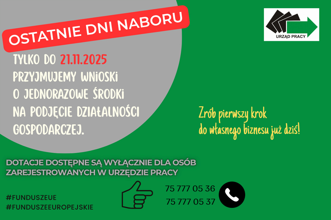 Powiatowy Urząd Pracy w Zgorzelcu przypomina, że tylko do jutra przyjmujemy wnioski o jednorazowe środki na podjęcie działalności gospodarczej.