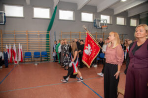 W wydarzeniu uczestniczyli uczniowie, rodzice, dyrektor szkoły Agnieszka Drewniacka oraz wicedyrektor Aneta Dziubarczyk, a także zaproszeni goście – przewodnicząca Rady Rodziców Edyta Włos-Stulińska oraz Naczelnik Wydziału Edukacji i Spraw Społecznych Mariola Danielewska, która w imieniu burmistrza wręczyła prezenty dla obu klas.