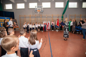 „To szczególny dzień, zarówno dla Was, którzy właśnie przed chwilą staliście się oficjalnie częścią naszej dużej, wspaniałej rodziny – społeczności szkolnej, ale również dla Waszych rodziców.