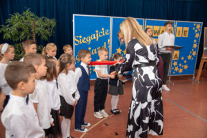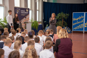„Drodzy Pierwszoklasiści, życzę, aby nauka w tej szkole była dla Was niesamowitą przygodą. Abyście rozwijali swoje pasje, talenty i zainteresowania, znaleźli przyjaciół – może na całe życie, odkrywali nowe rzeczy, zadawali pytania i poszukiwali najlepszych odpowiedzi. Życzę Wam z całego serca, byście sięgali gwiazd.”