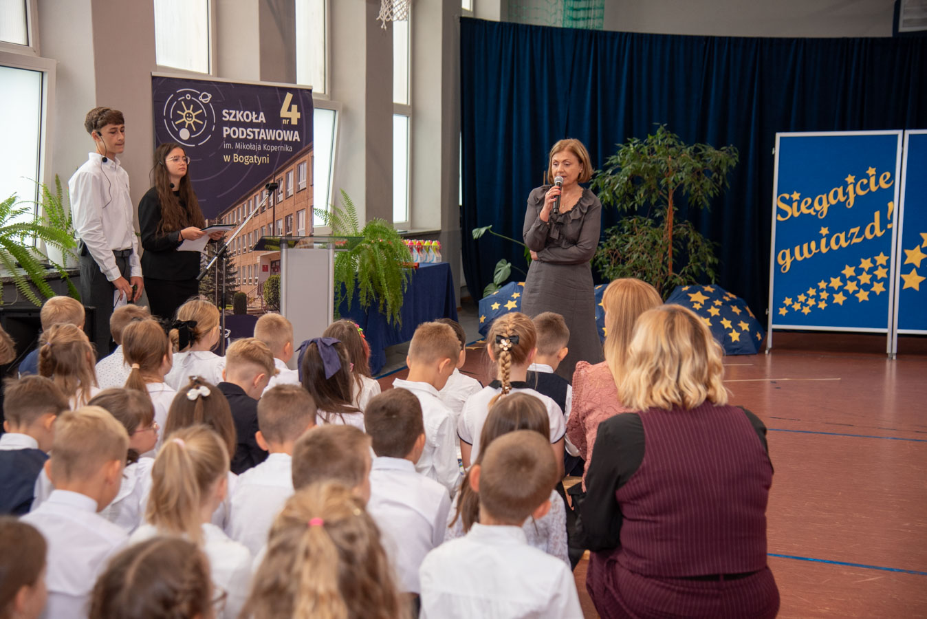 2 października w Szkole Podstawowej nr 4 im. Mikołaja Kopernika odbyła się uroczystość pasowania na ucznia klas pierwszych 1a i 1b. To ważny moment w życiu najmłodszych, którzy oficjalnie zostali przyjęci do grona społeczności szkolnej.
