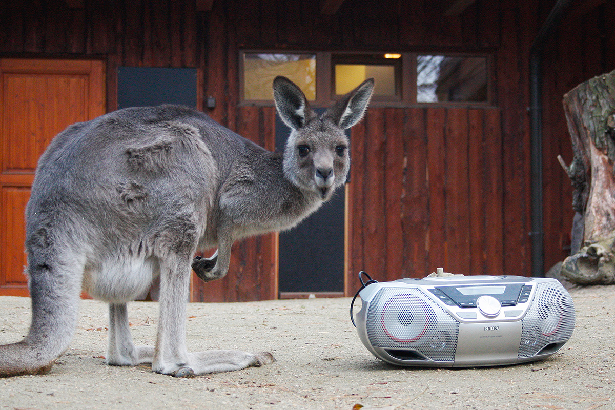 Przełom roku dla pracowników zoo zawsze wiąże się z troską o swoich podopiecznych. Już kilka tygodni przed nadejściem nowego roku kangury przyzwyczajane są do odgłosów wystrzałów za pomocą radia (foto).