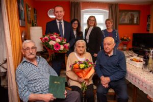 Z tej niezwykłej okazji Jubilatkę odwiedził Burmistrz Miasta i Gminy Bogatynia Wojciech Dobrołowicz, Naczelnik Wydziału Spraw Obywatelskich Urzędu Miasta i Gminy w Bogatyni Katarzyna Kamińska oraz przedstawicielka Zakładu Ubezpieczeń Społecznych, Biura Terenowego w Zgorzelcu. Nie zabrakło również urodzinowego tortu.