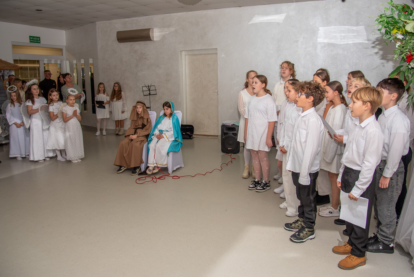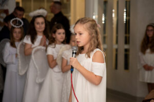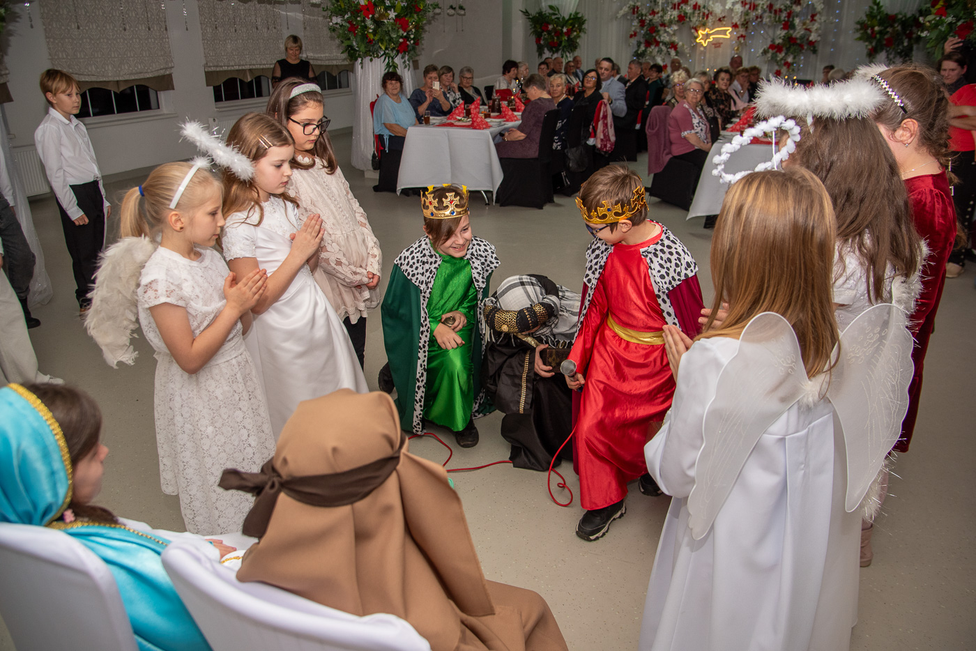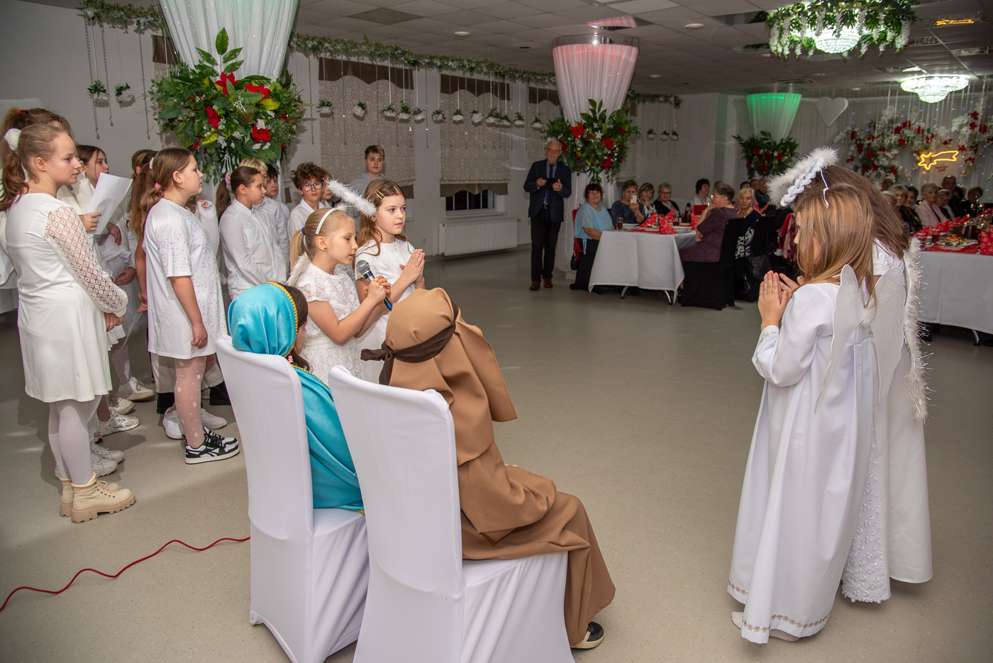 Przybyłych gości przywitał przewodniczący Józef Banasiewicz wraz z sekretarzem Anetą Dziubarczyk i zaprosili na przedstawienie jasełkowe w wykonaniu uczniów Szkoły Podstawowej nr 4. Dzieci zaprezentowały historię narodzin Jezusa wierszowanymi tekstami, pięknym śpiewem kolęd a nawet grą na skrzypcach. Młodzi artyści zebrali od gości gromkie brawa. Występ przygotowały Anita Piłat i Marta Pędrak.