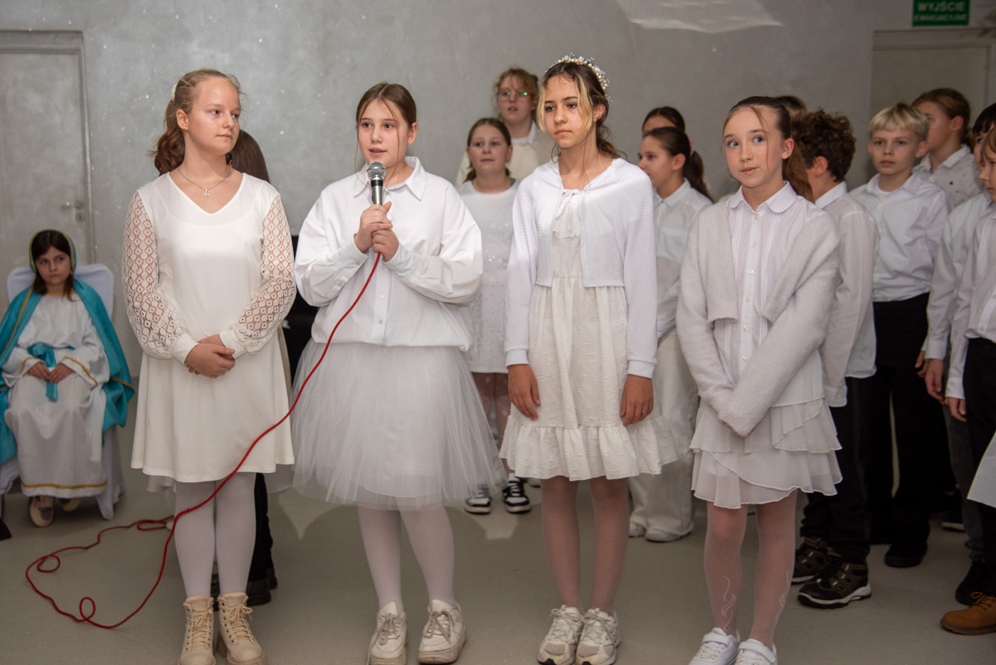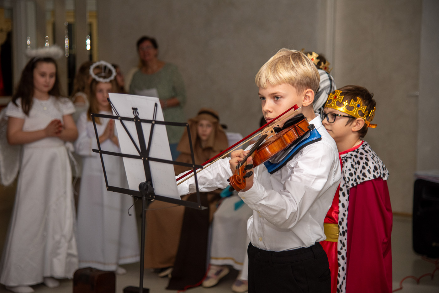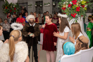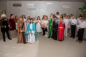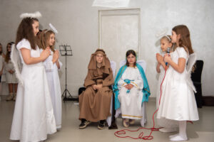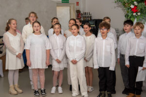 Przybyłych gości przywitał przewodniczący Józef Banasiewicz wraz z sekretarzem Anetą Dziubarczyk i zaprosili na przedstawienie jasełkowe w wykonaniu uczniów Szkoły Podstawowej nr 4. Dzieci zaprezentowały historię narodzin Jezusa wierszowanymi tekstami, pięknym śpiewem kolęd a nawet grą na skrzypcach. Młodzi artyści zebrali od gości gromkie brawa. Występ przygotowały Anita Piłat i Marta Pędrak.