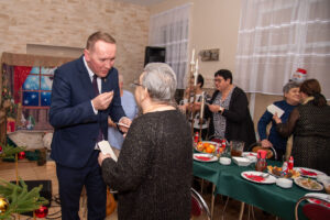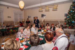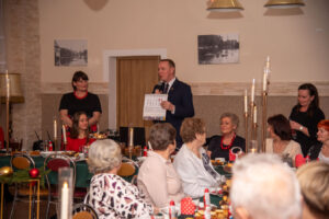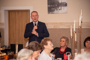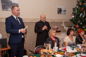 Następnie głos zabrał burmistrz Wojciech Dobrołowicz, który podziękował organizatorom za zaangażowanie i przygotowanie wydarzenia. Zwrócił uwagę na znaczenie wspólnoty, spotkań międzyludzkich oraz aktywności społecznej, a także złożył uczestnikom świąteczne i noworoczne życzenia zdrowia, pokoju oraz pomyślności.