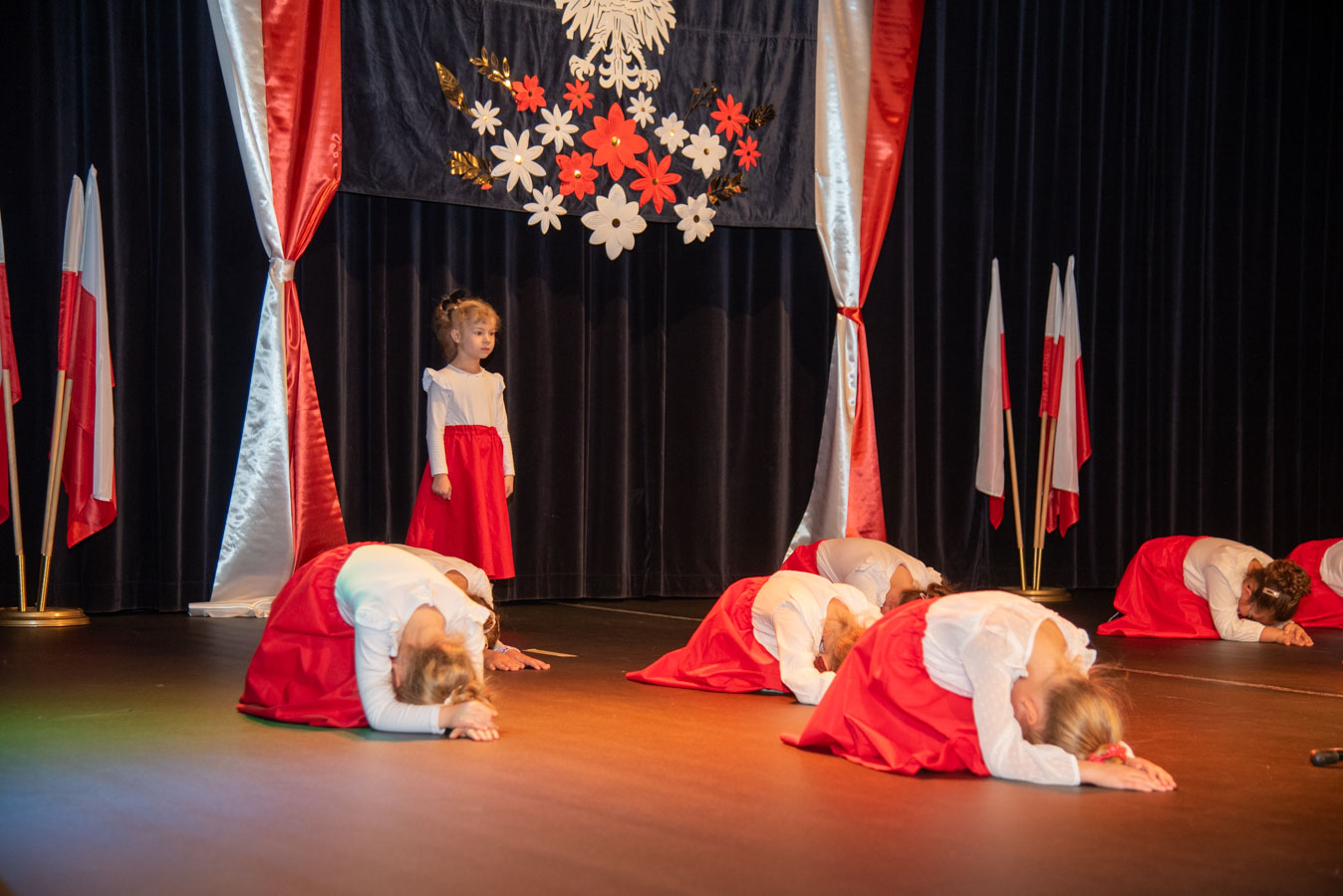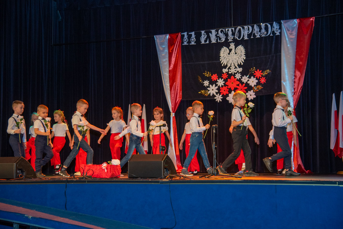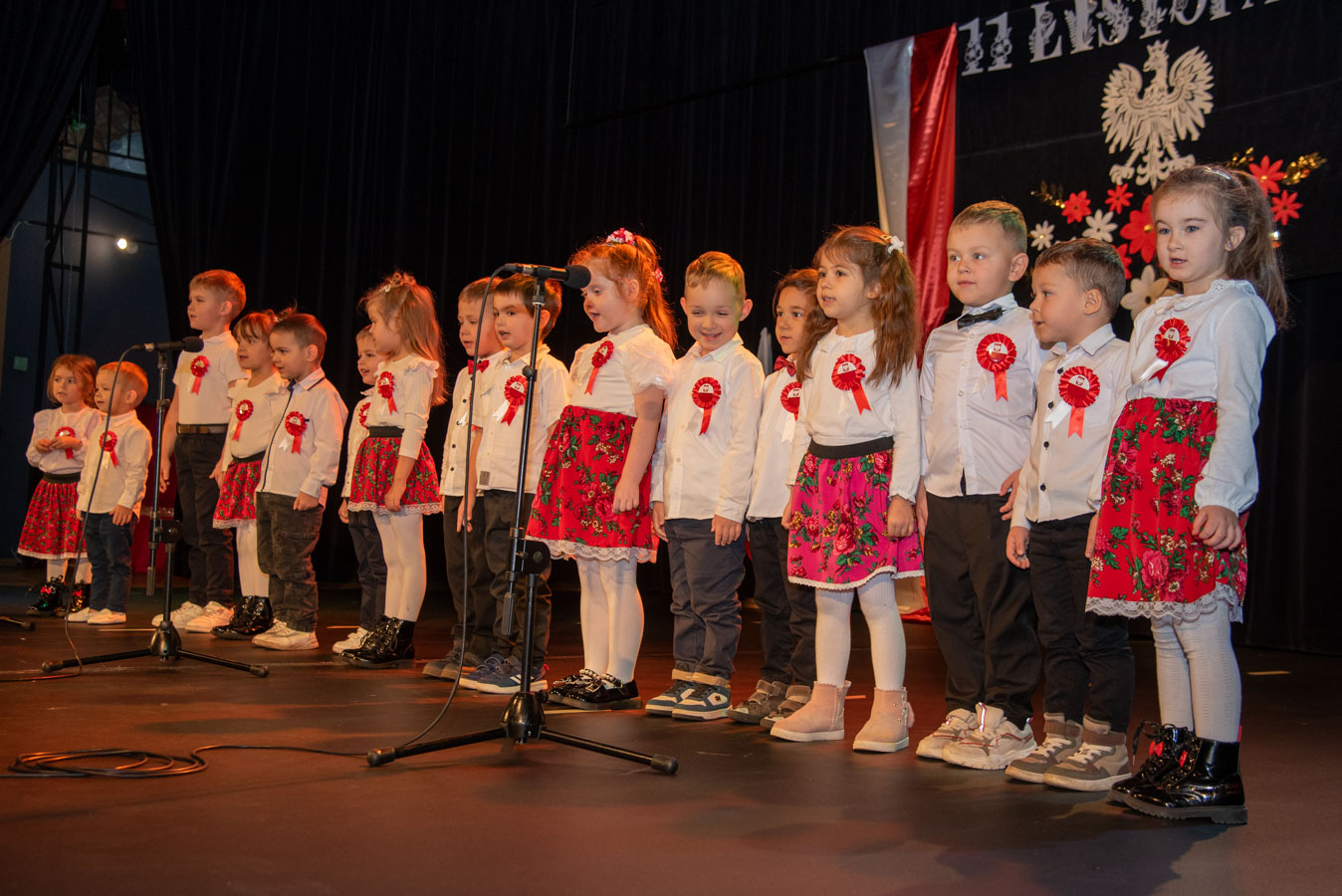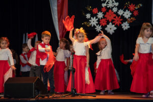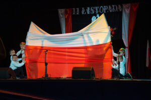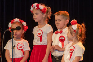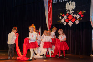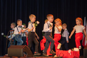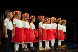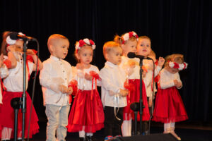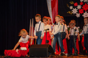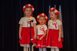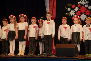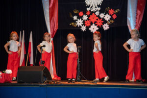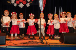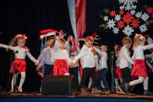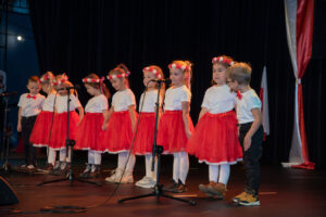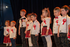 Mali artyści zaprezentowali piosenki i tańce o tematyce patriotycznej, niosąc przesłanie miłości do ojczyzny, szacunku dla jej symboli i historii. Publiczność, wśród której znaleźli się rodzice, dziadkowie oraz zaproszeni goście, nagradzała występy gromkimi brawami.