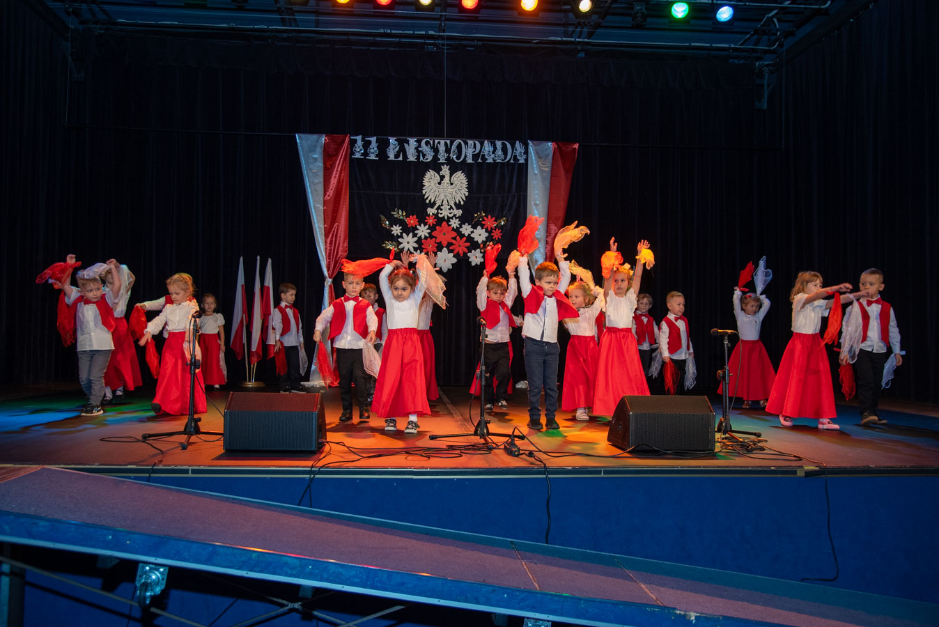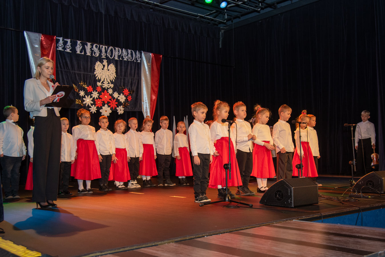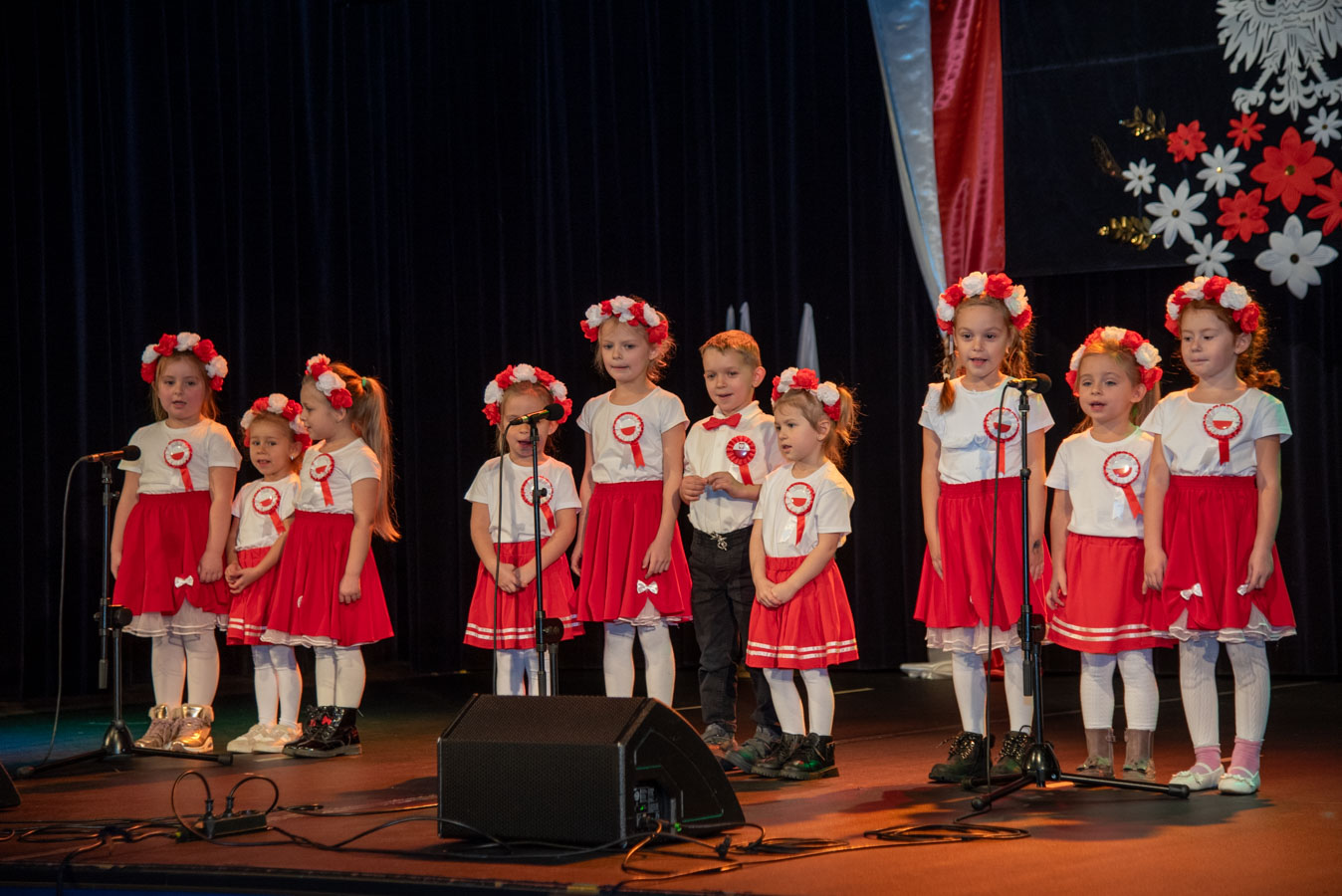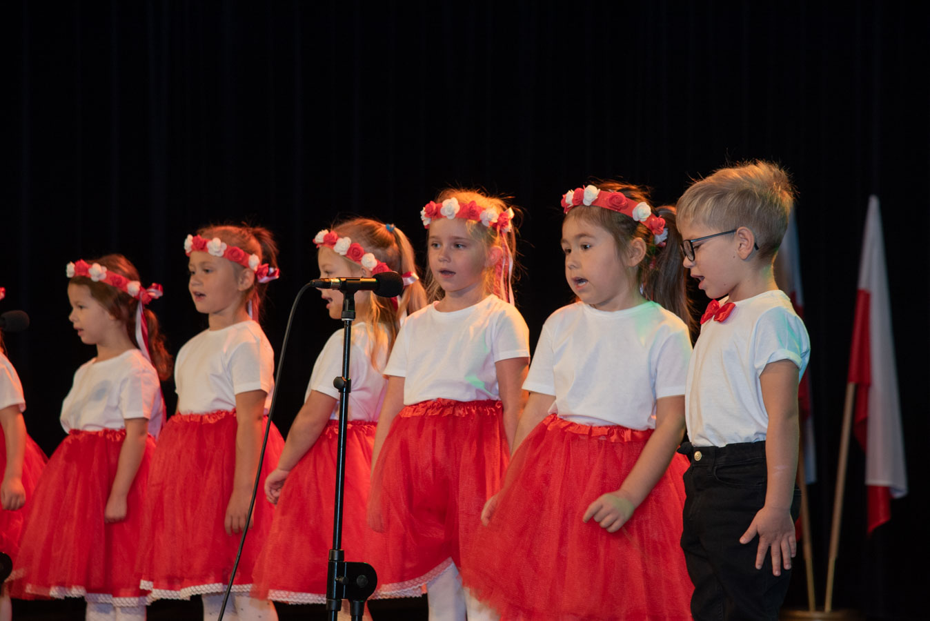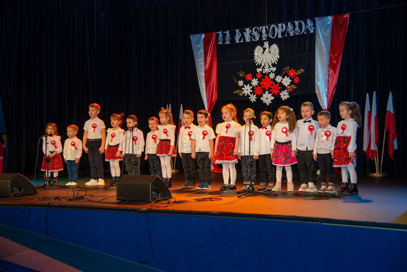 Mali artyści zaprezentowali piosenki i tańce o tematyce patriotycznej, niosąc przesłanie miłości do ojczyzny, szacunku dla jej symboli i historii. Publiczność, wśród której znaleźli się rodzice, dziadkowie oraz zaproszeni goście, nagradzała występy gromkimi brawami.