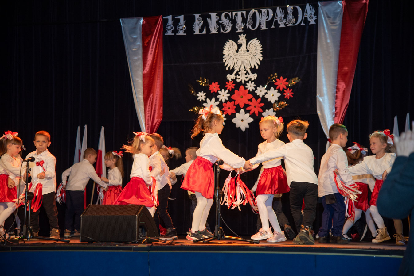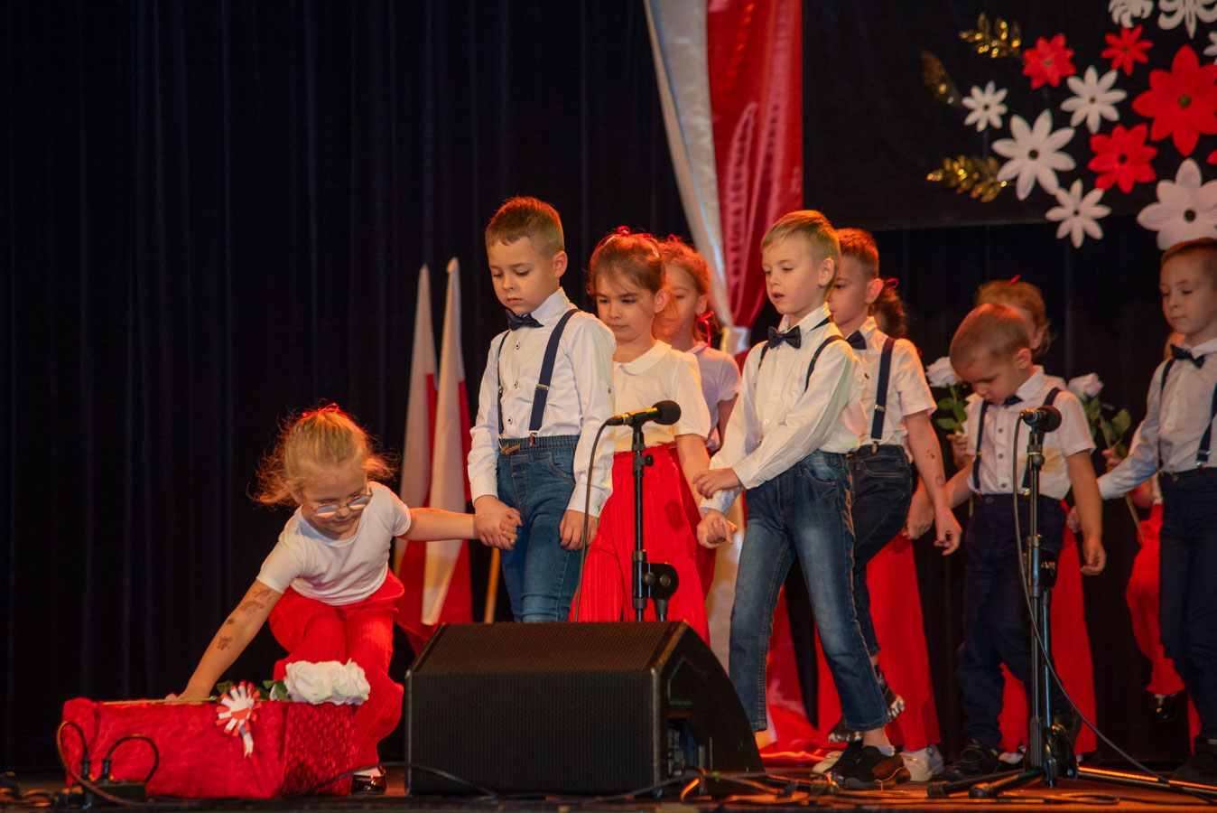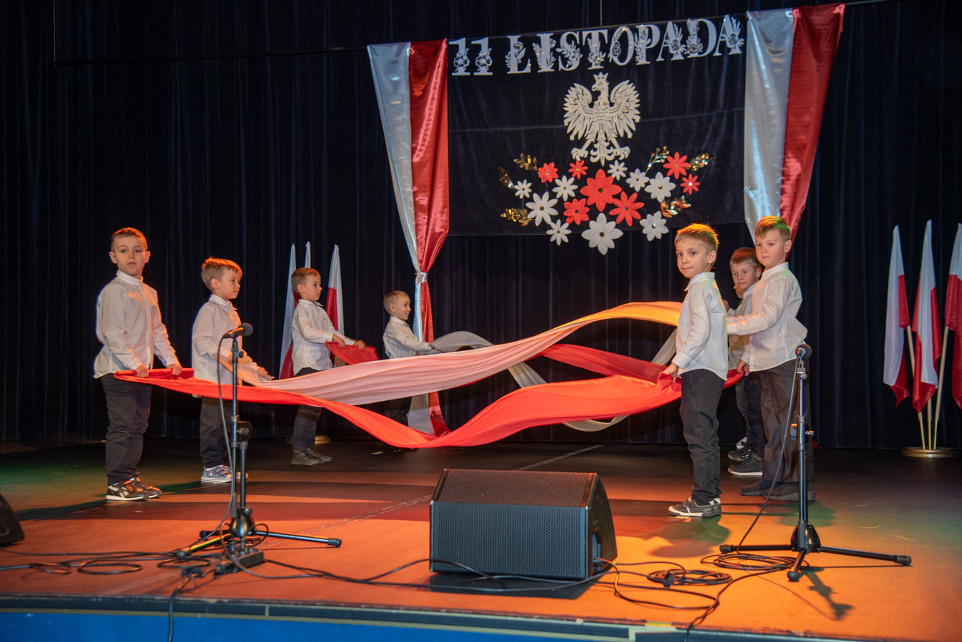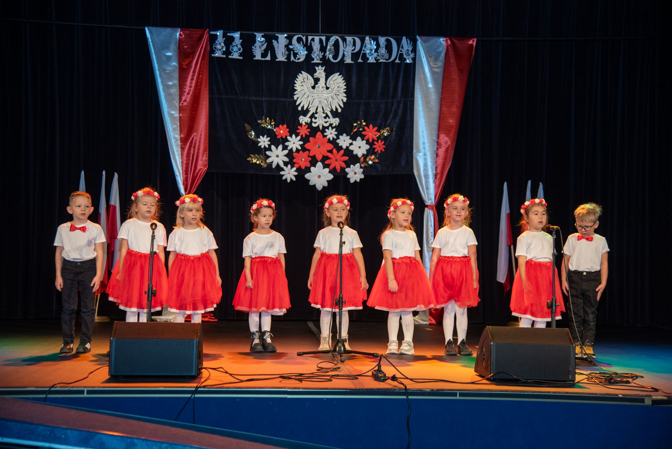 Mali artyści zaprezentowali piosenki i tańce o tematyce patriotycznej, niosąc przesłanie miłości do ojczyzny, szacunku dla jej symboli i historii. Publiczność, wśród której znaleźli się rodzice, dziadkowie oraz zaproszeni goście, nagradzała występy gromkimi brawami.