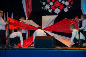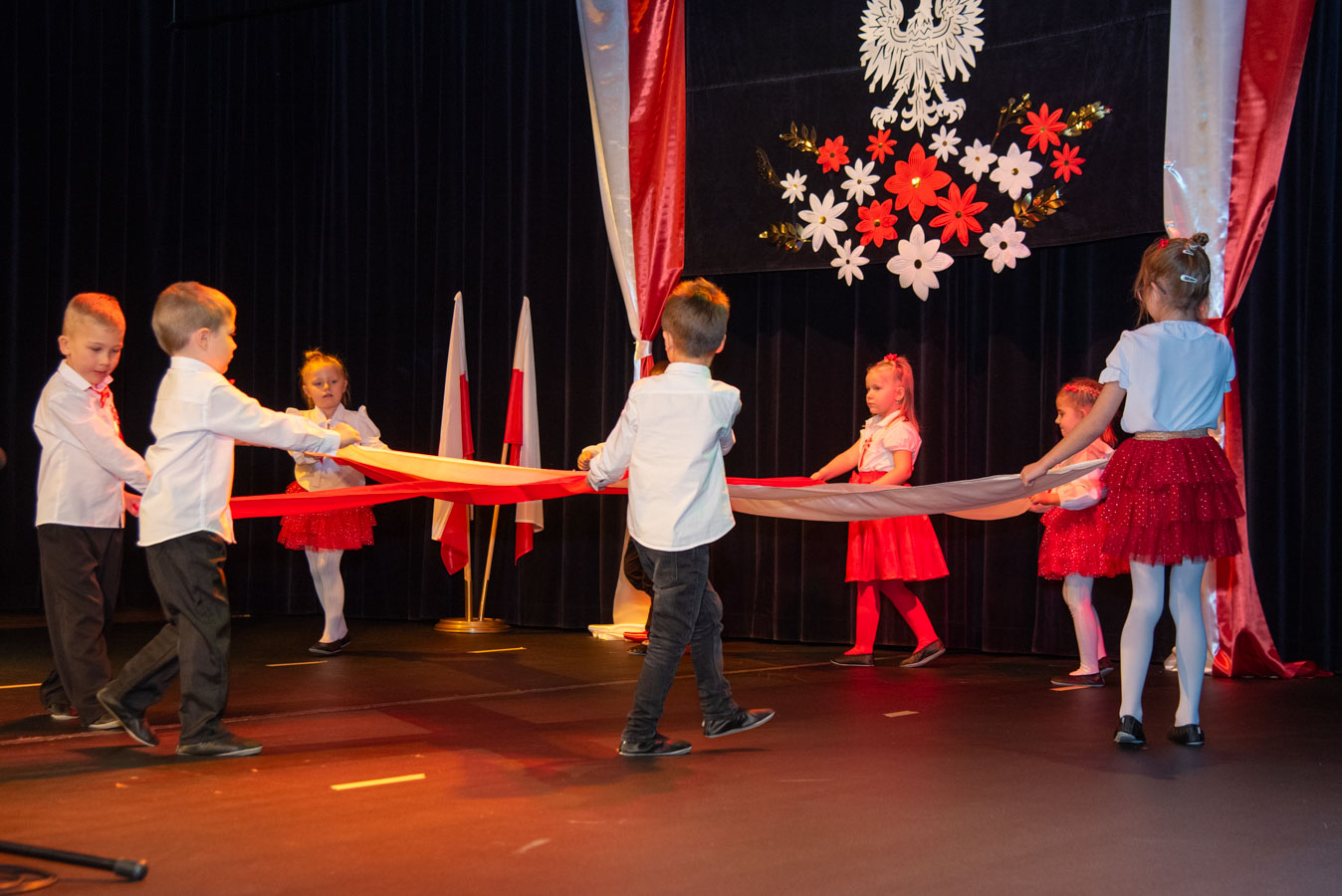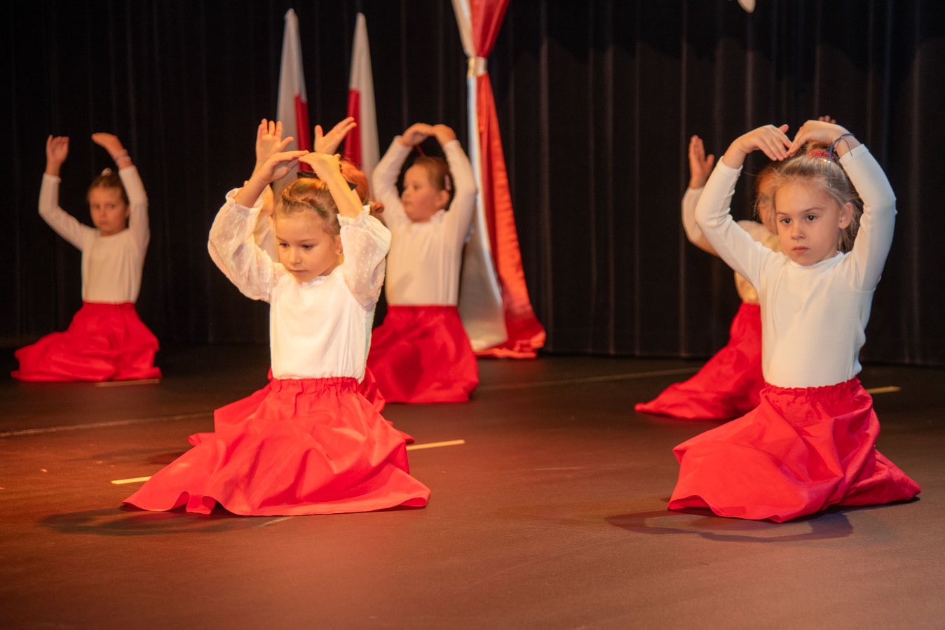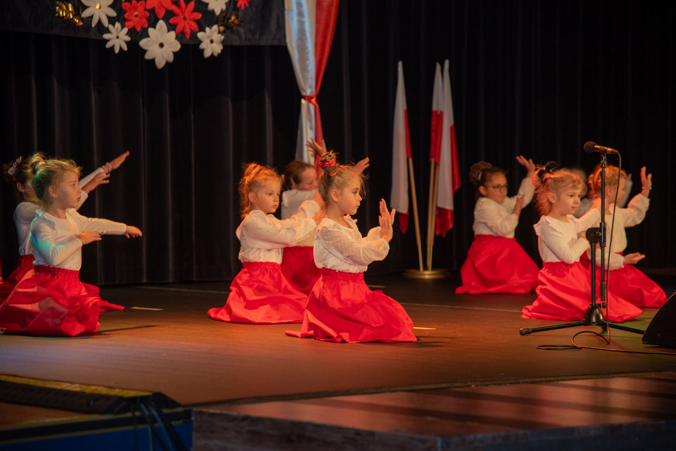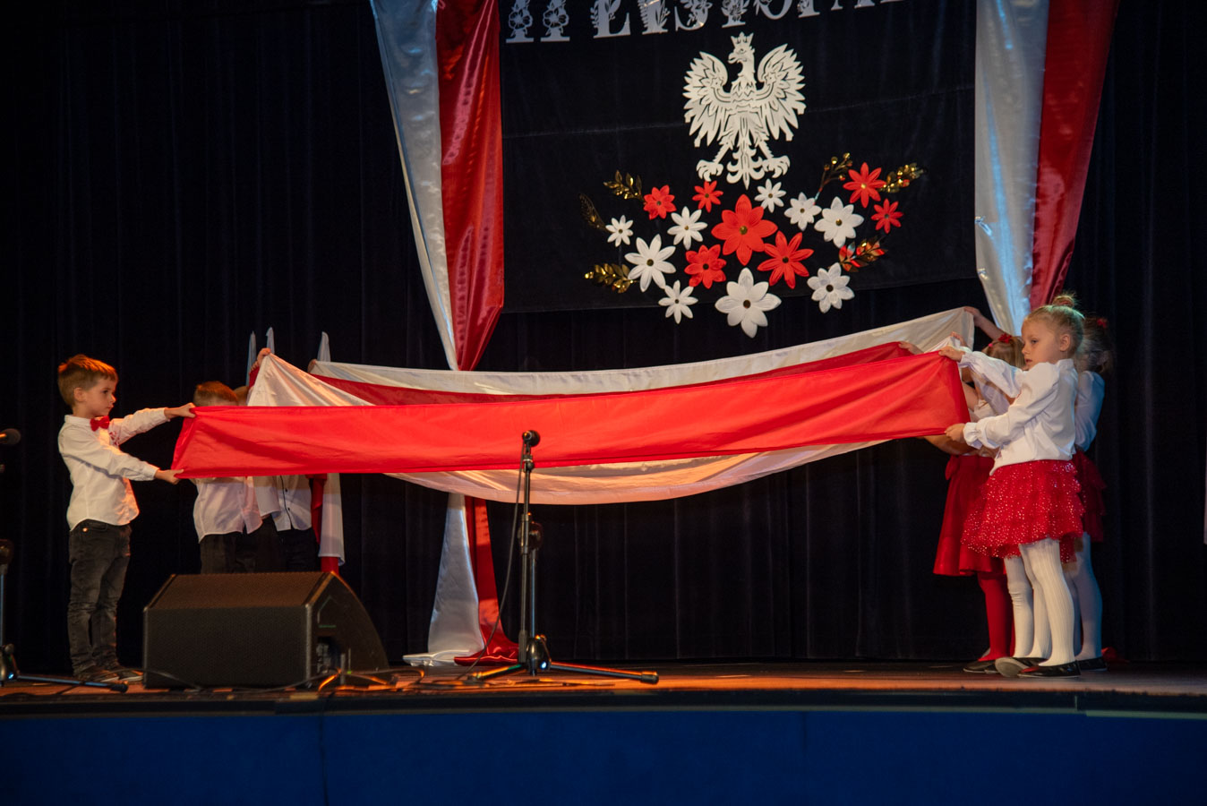 Mali artyści zaprezentowali piosenki i tańce o tematyce patriotycznej, niosąc przesłanie miłości do ojczyzny, szacunku dla jej symboli i historii. Publiczność, wśród której znaleźli się rodzice, dziadkowie oraz zaproszeni goście, nagradzała występy gromkimi brawami.