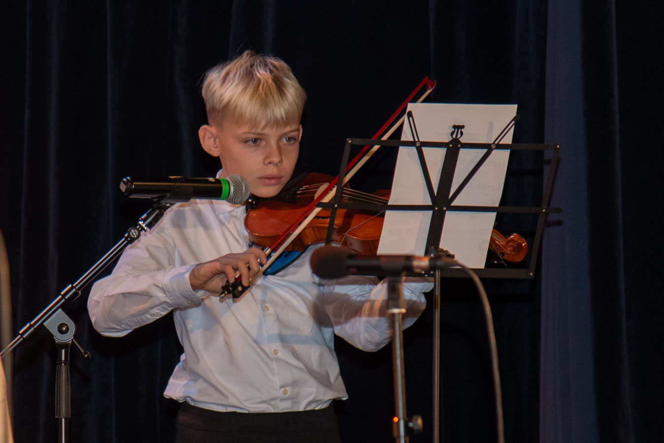 Uroczystość rozpoczęła się od wspólnego odśpiewania „Mazurka Dąbrowskiego”. Hymn państwowy wykonany został na scenie przez dzieci z Przedszkola Publicznego nr 6, którym towarzyszył na skrzypcach absolwent tej placówki – Sergiusz.
