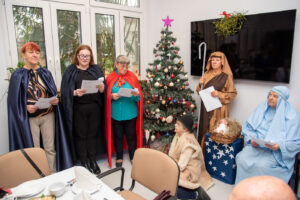 Uroczystość rozpoczęła się prezentacją jasełek przygotowaną przez seniorów. Teksty opowiadające o narodzinach Jezusa przeplatane tradycyjnymi kolędami nadały spotkaniu świąteczny nastrój.