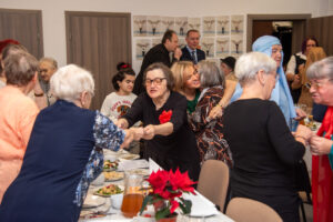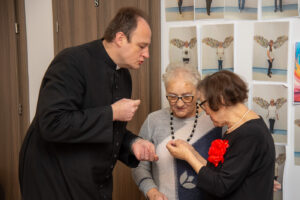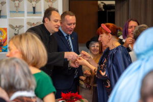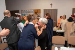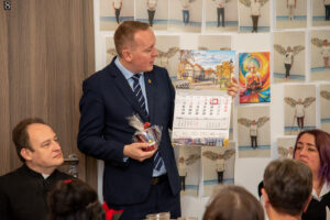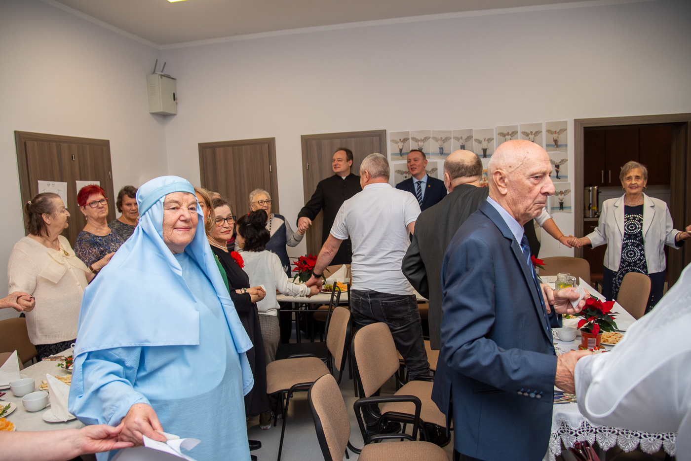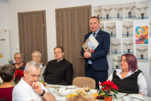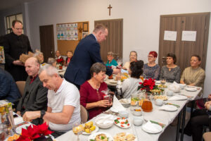 Następnie ks. Piotr Kutkiewicz przywitał zebranych i podkreślił jak ważna jest troska o drugiego człowieka w pielęgnowaniu wspólnoty. Po tych słowach nastąpiło tradycyjne dzielenie się opłatkiem i składanie życzeń.