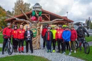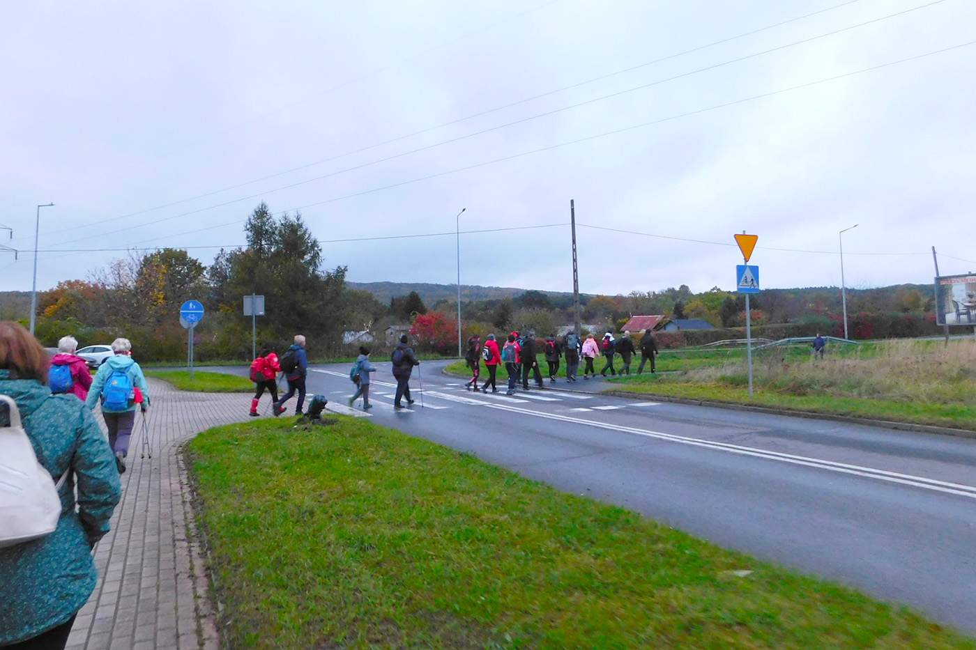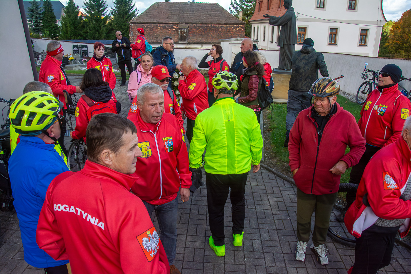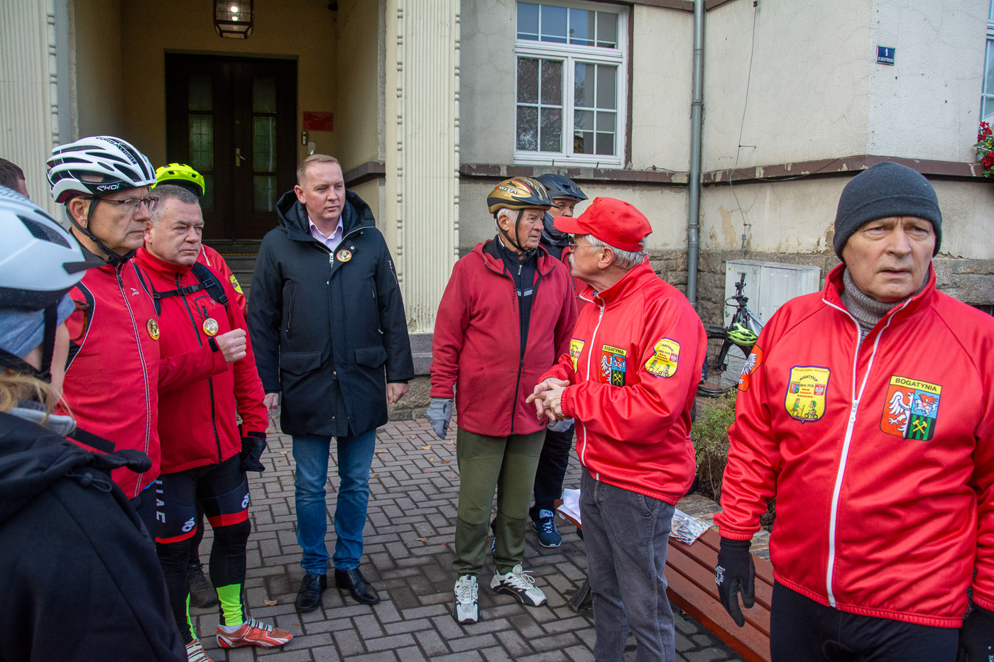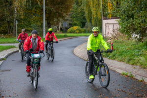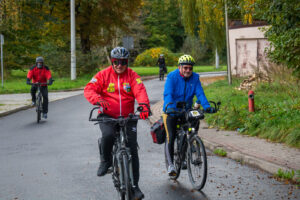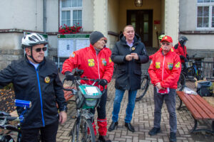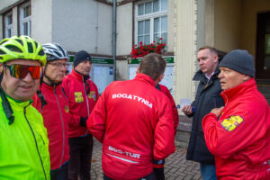 Wymarsz oraz wyjazd spod Urzędu Miasta i Gminy w sobotni, chłodny poranek (7C) dużej grupy (ok. 70) piechurów i rowerzystów, nie tylko z „Bog-Turu” ale też spoza stowarzyszenia.