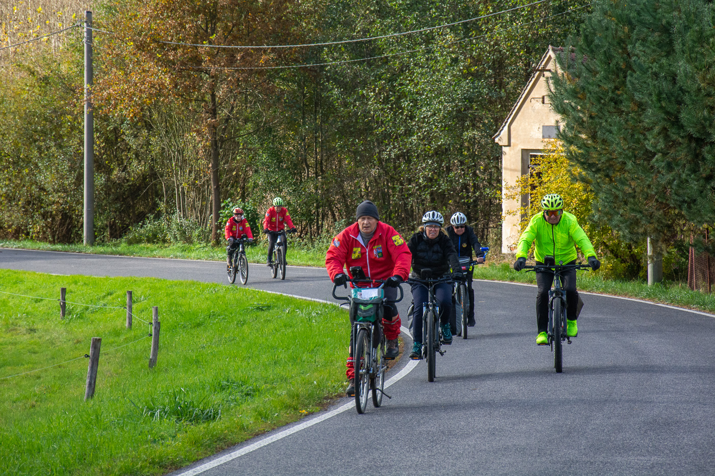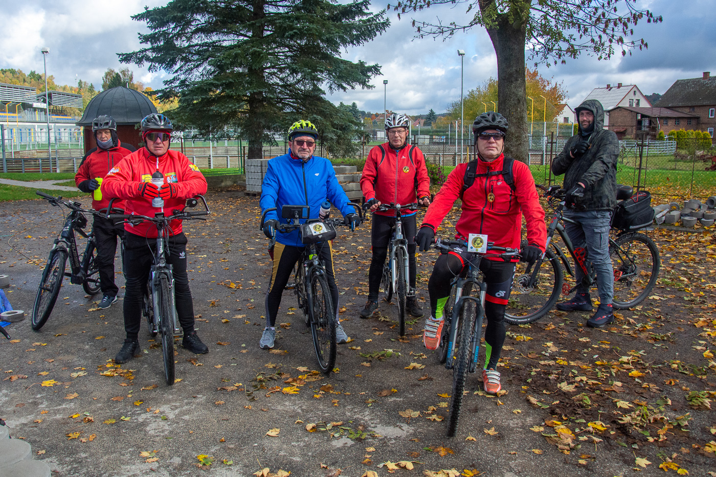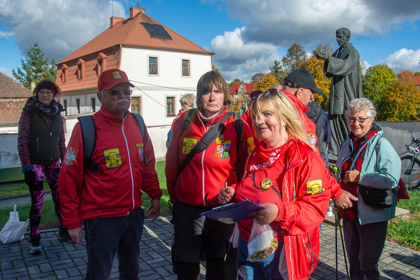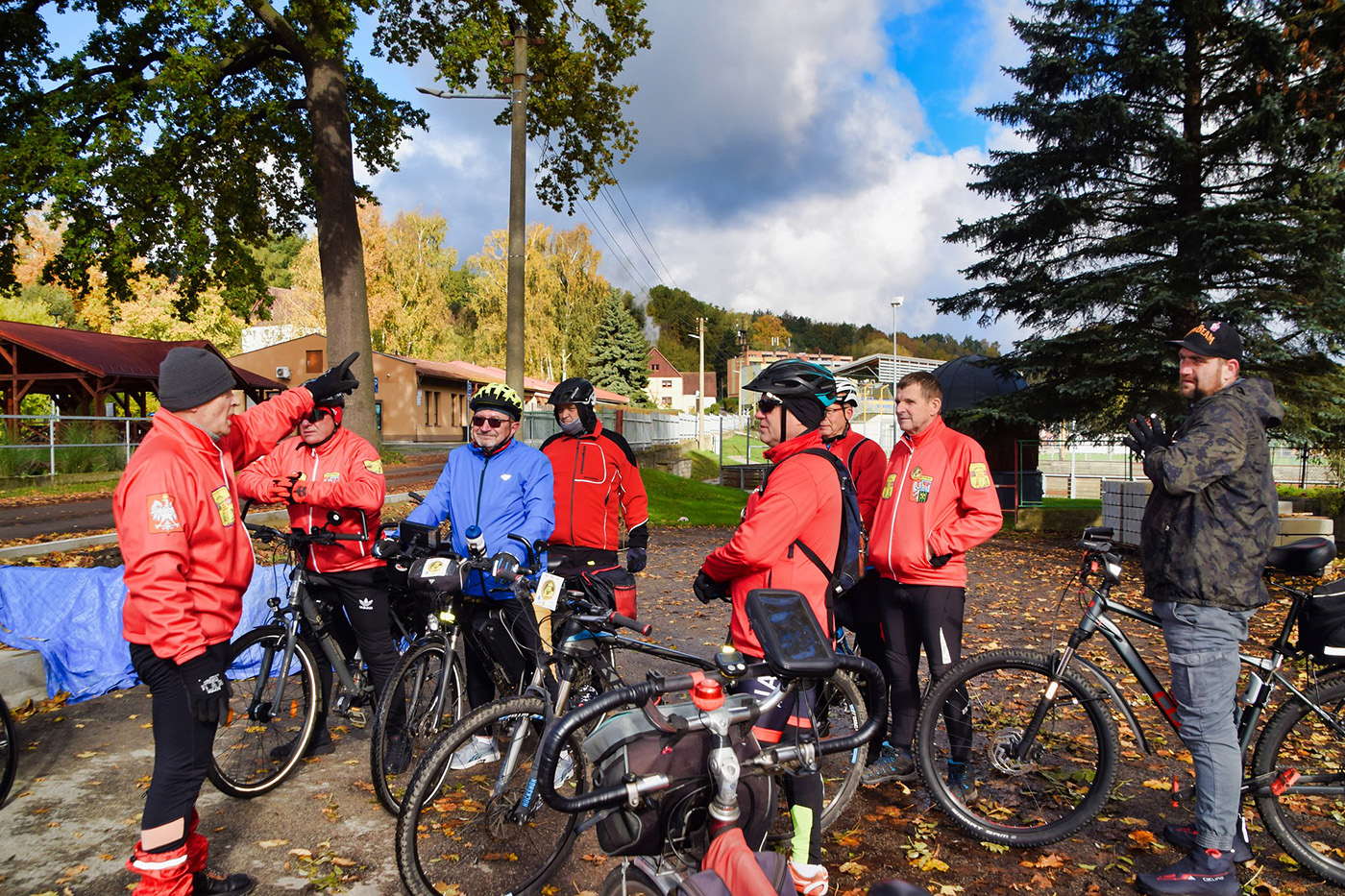 Wymarsz oraz wyjazd spod Urzędu Miasta i Gminy w sobotni, chłodny poranek (7C) dużej grupy (ok. 70) piechurów i rowerzystów, nie tylko z „Bog-Turu” ale też spoza stowarzyszenia.