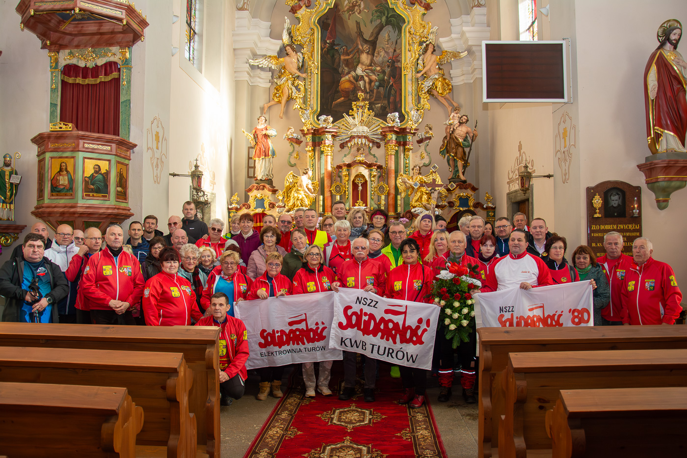 Po przejściu i przejechaniu swoich tras, obie grupy spotykały się pod kościołem św. Bartłomieja w Działoszynie, gdzie czekał ks. proboszcz Ryszard Kulpa. W kościele została odmówiona litania do ks. Jerzego w intencji Ojczyzny. Następnie złożono kwiaty pod pomnikiem kapłana – męczennika.