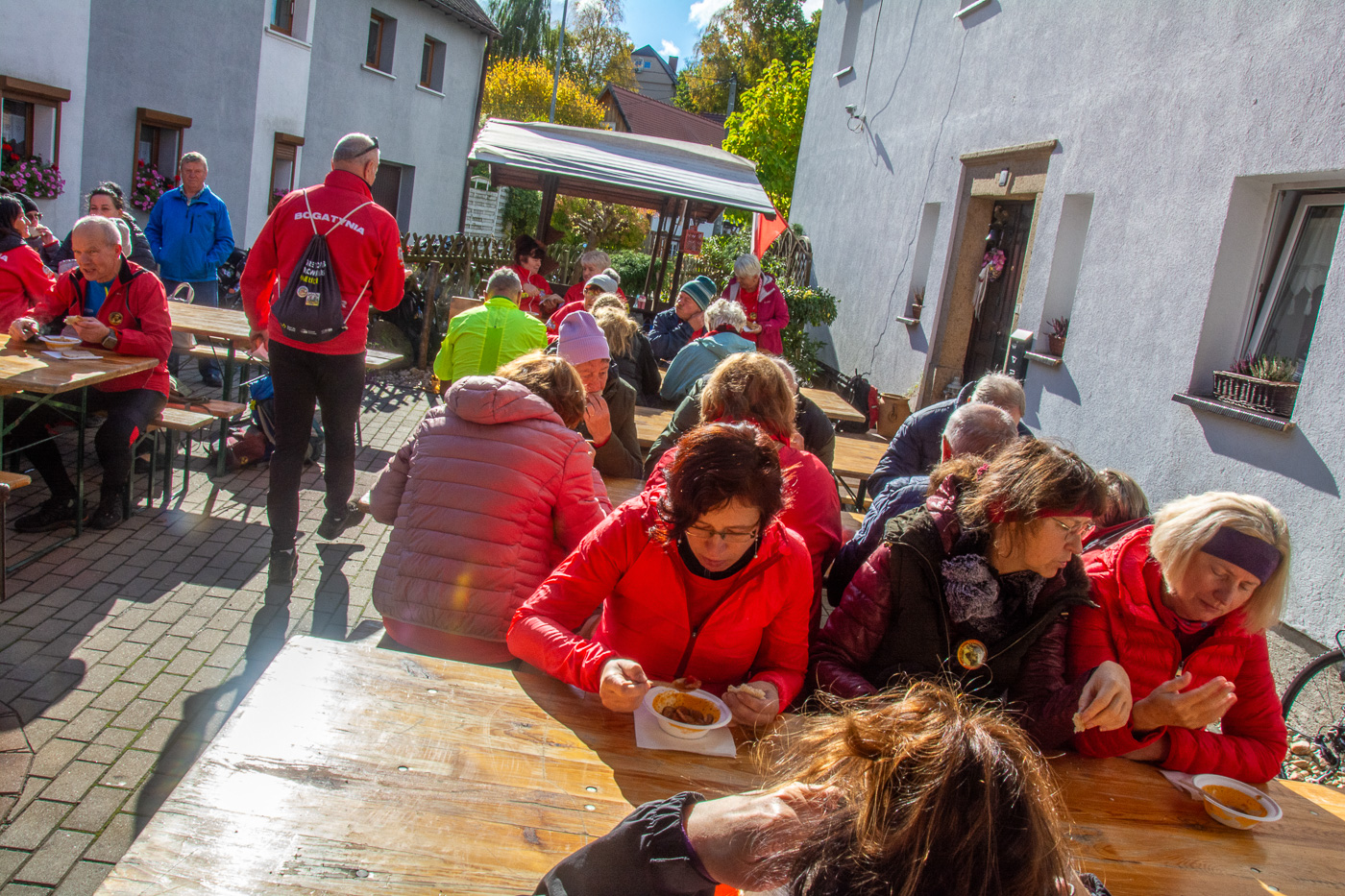 Po części oficjalnej wszyscy zgromadzeni udali się do działoszyńskiej, zabytkowej „Kuźni”, gdzie gościny udzieliła właścicielka Krystyna Proch – na gorącą zupę, przepyszne ciasta oraz kawę i herbatę.