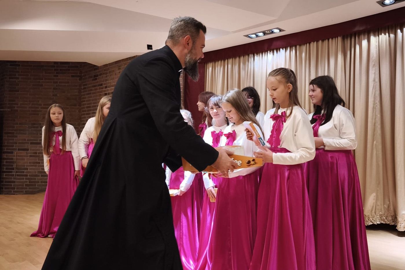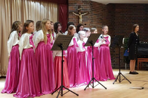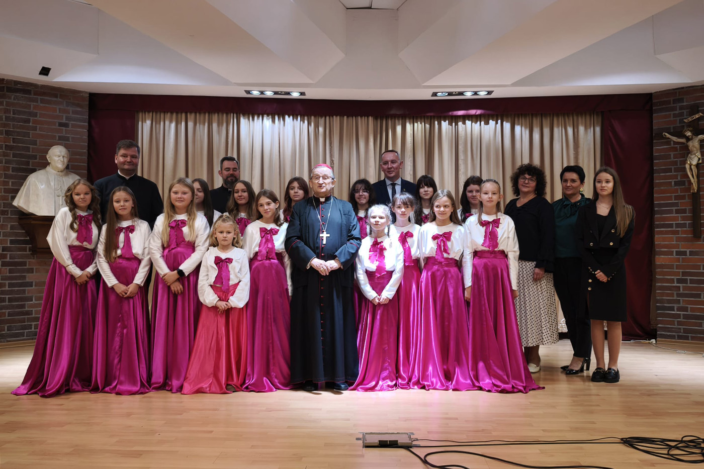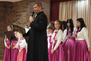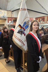 Po uroczystej Mszy świętej chór szkolny przygotowany przez Edytę Małkiewicz wystąpił w Centrum Spotkań z koncertem pełnym pięknych dźwięków i wzruszających emocji. W repertuarze znalazły się utwory religijne i patriotyczne, które poruszyły serca wszystkich obecnych. Występ został przyjęty z ogromnym entuzjazmem i był wspaniałym dowodem talentu oraz zaangażowania uczniów.