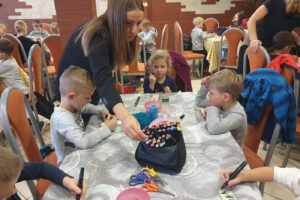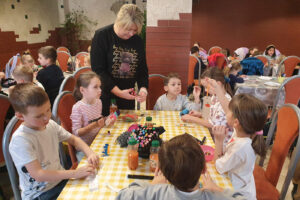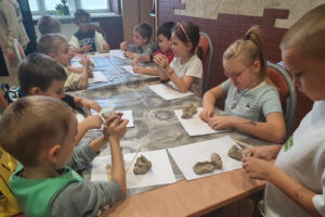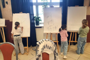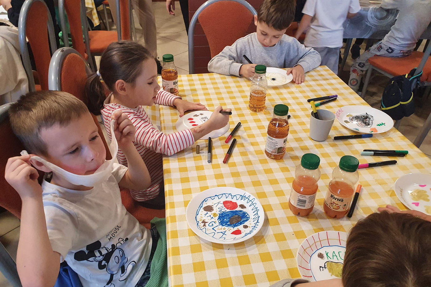 Tym razem najmłodsi uczestnicy z Polski i Czech tworzyli malowidła na talerzach oraz przygotowywali rysunki inspirowane architekturą regionu trójstyku. Praca z gliną i farbami pobudziła ich wyobraźnię, a powstałe dzieła były pełne kolorów, symboli i motywów charakterystycznych dla polsko-czeskiego pogranicza.
