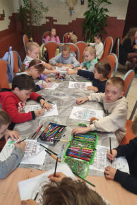 Zajęcia przebiegły w niezwykle twórczej i radosnej atmosferze. Dzieci z zaangażowaniem malowały, eksperymentowały z kształtami i dzieliły się swoimi pomysłami, ucząc się przy tym współpracy i otwartości na kulturę sąsiadów.