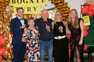Wieczór rozpoczął się galą w wyjątkowo przebojowym stylu. W rolę prowadzących wcielili się Marzenka i Mariusz, którzy swoim humorem, luzem i sceniczną charyzmą rozkręcili atmosferę od pierwszych minut. Ich występy i prowadzenie konkursów sprawiły, że uczestnicy czuli się jak na prawdziwej gali rozdania nagród, pełnej śmiechu i dobrej zabawy.