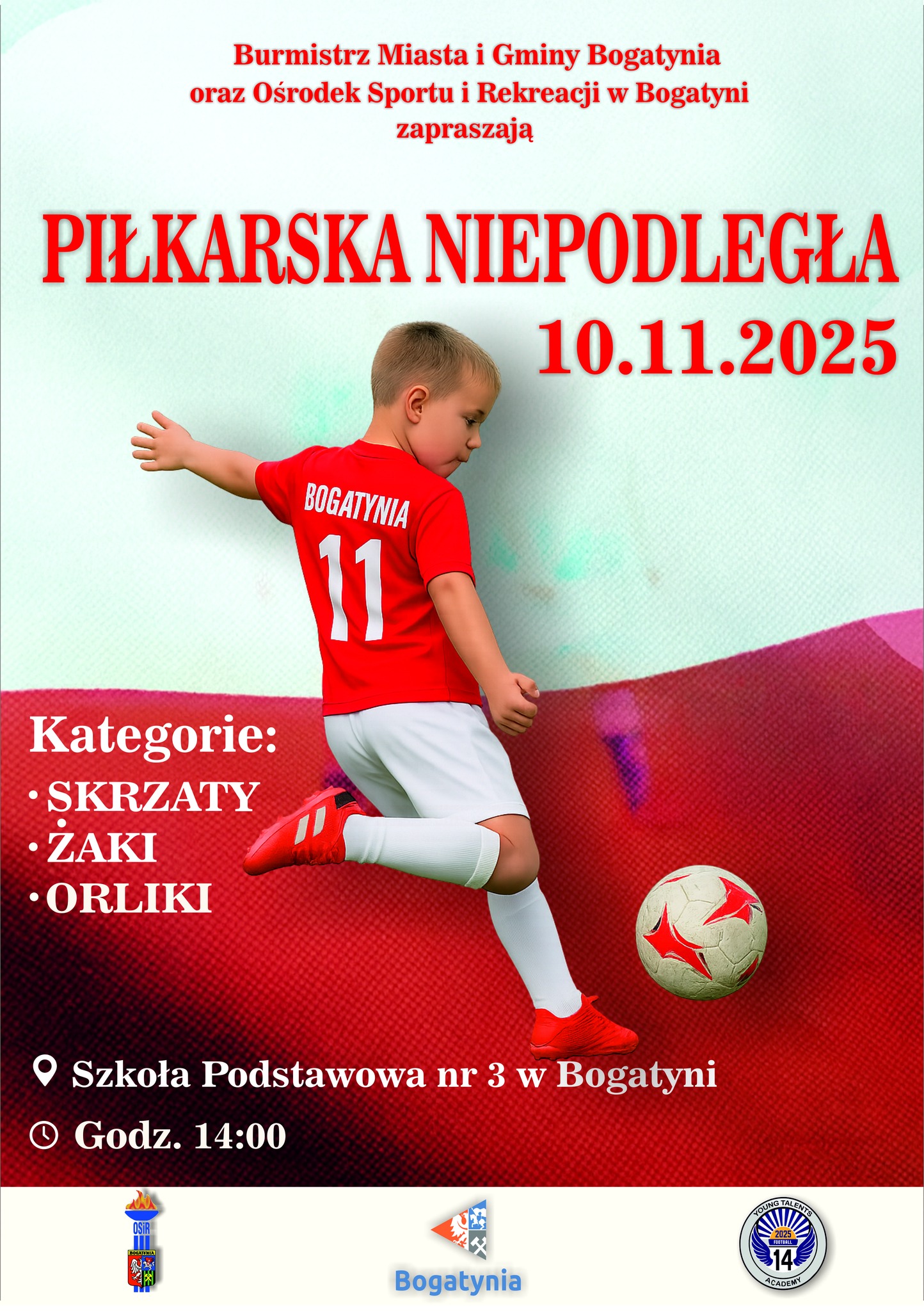 Z okazji Narodowego Święta Niepodległości serdecznie zapraszamy na wyjątkowy turniej „Piłkarska Niepodległa”. Czeka nas sportowe święto pełne emocji, świetnej zabawy i biało-czerwonej atmosfery!